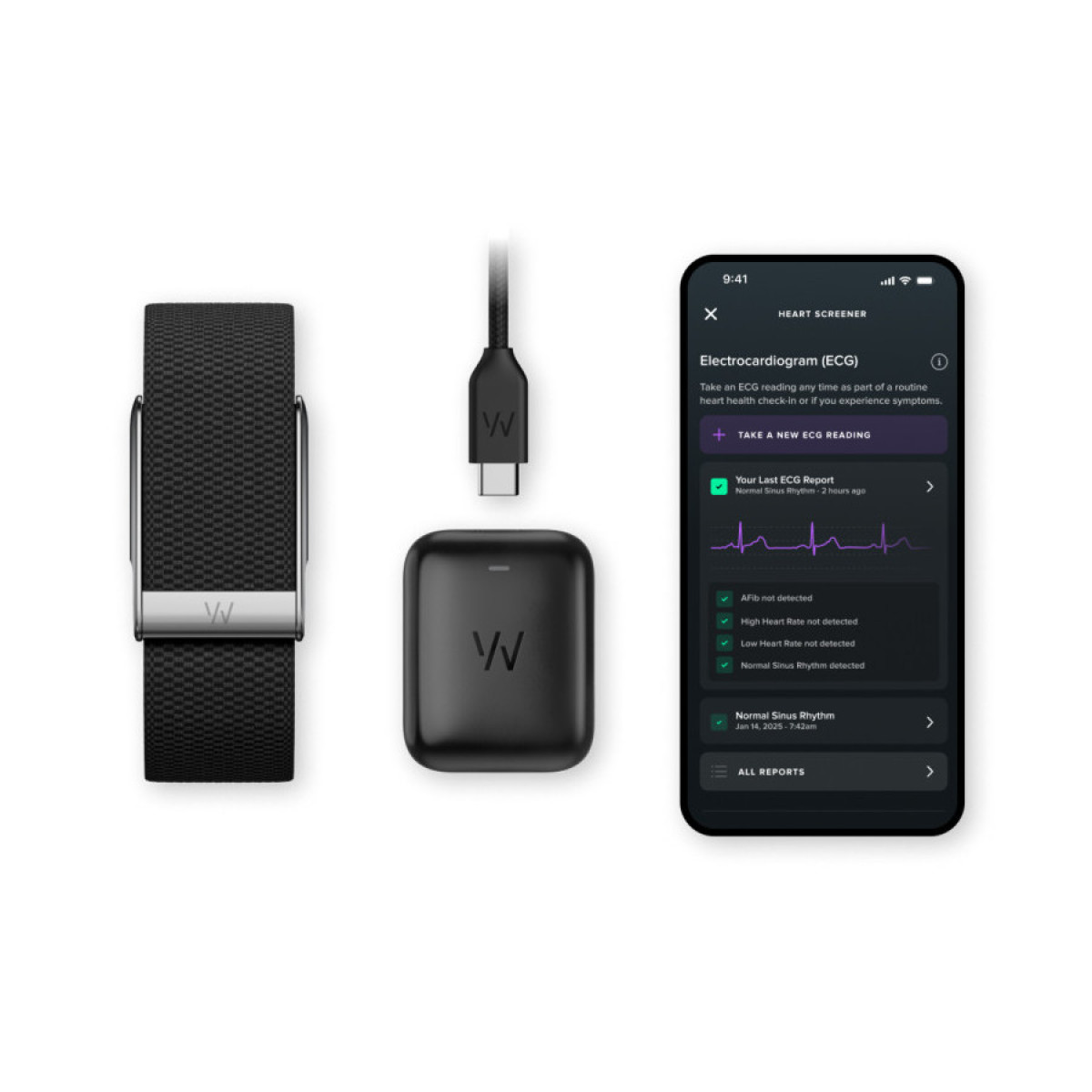 Whoop MG — улучшенная версия модели 5.0 с медицинскими функциями. Браслет сохраняет форм‑фактор без экрана, до 14 дней автономности, IP68 и зарядку «на руке», делает упор на более глубокий контроль сердечно‑сосудистых показателей и долгосрочные метрики здоровья.