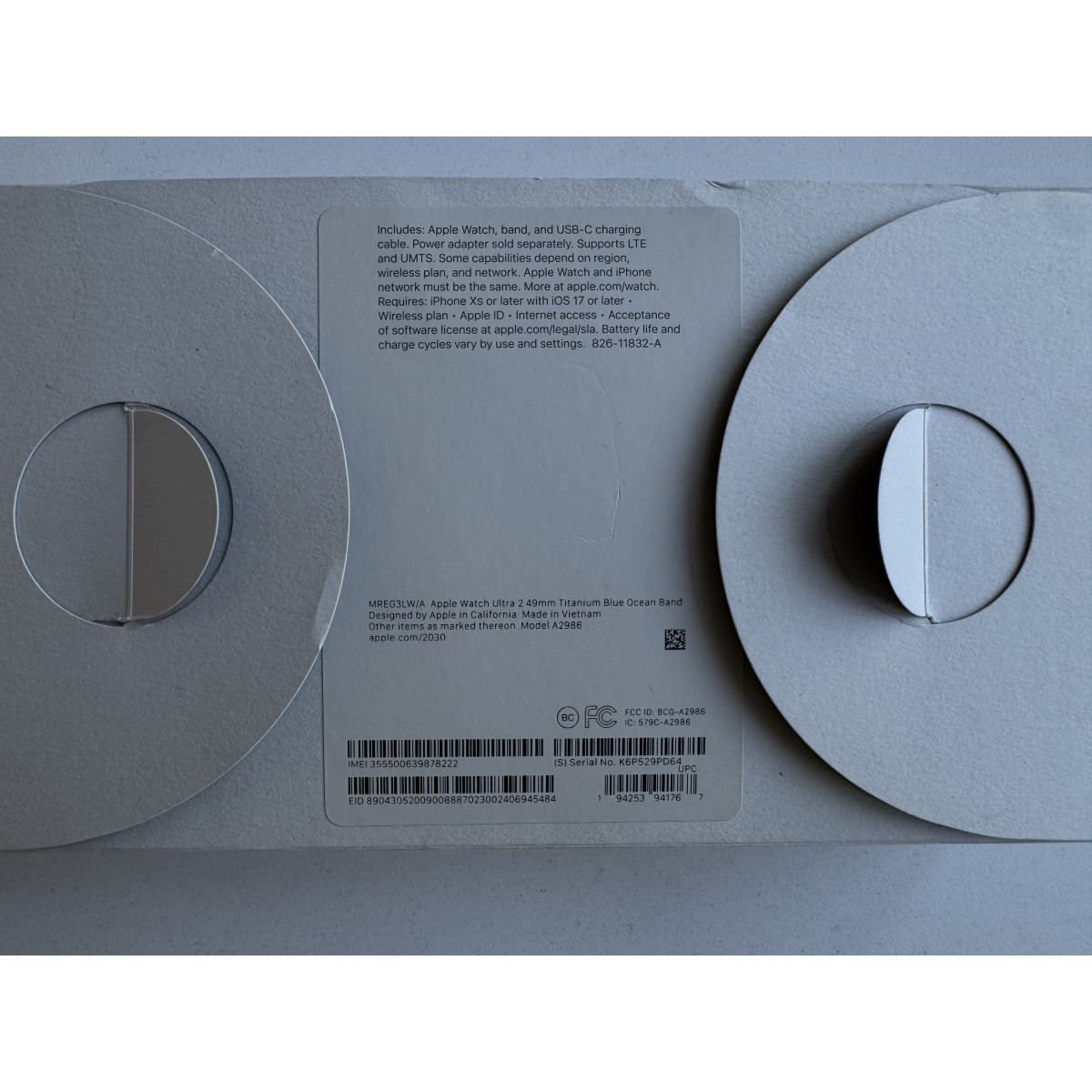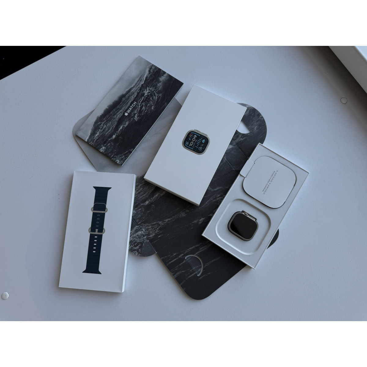 Apple Watch Ultra 2 ремешок Ocean band синего цвета в состоянии 5/5. Часы в отличном состоянии, без следов пользования. Ёмкость аккумулятора - 95%. Полный комплект аксессуаров.