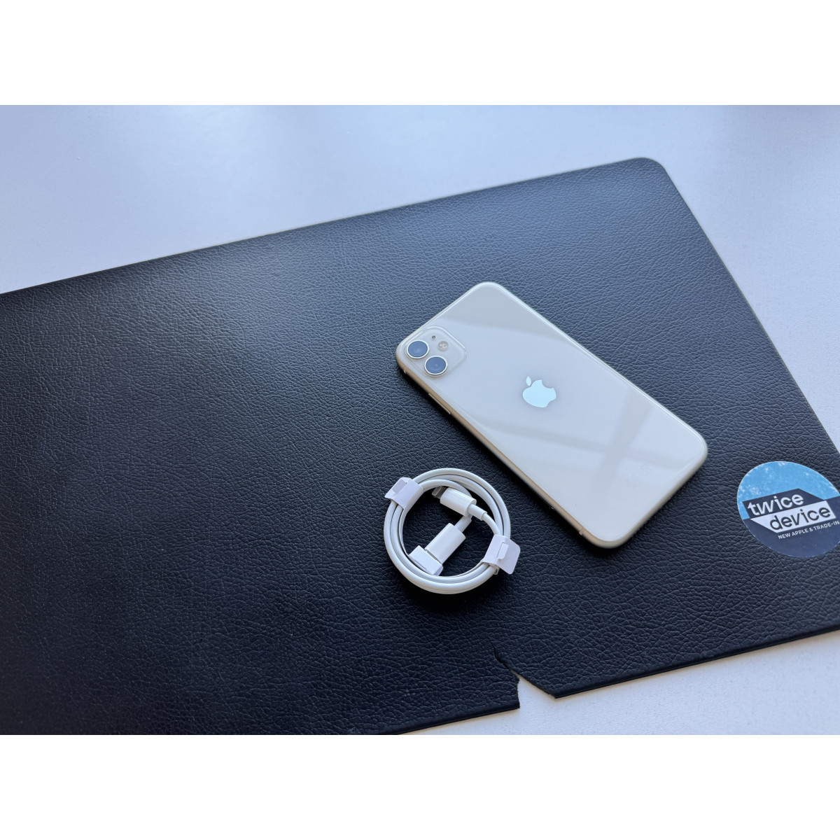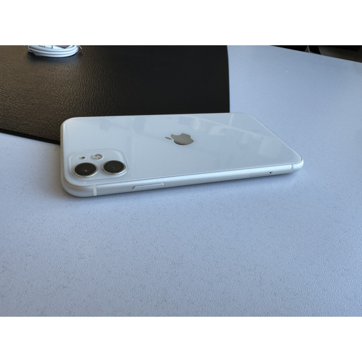 iPhone 11 128 Гб Белый в состоянии 5-/5. По заднему стеклу есть незначительные следы пользования, дисплей в отличном состоянии. Полгода назад установили новый аккумулятор, ёмкость 97%. В комплекте зарядное устройство.