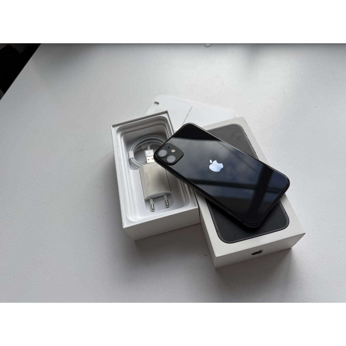 iPhone 11 128 Черный в состоянии 4/5. Есть следы пользования, которые никак не влияют на работу девайса. Установили новый аккумулятор, ёмкость 100%. В комплекте коробка и зарядное устройство.
