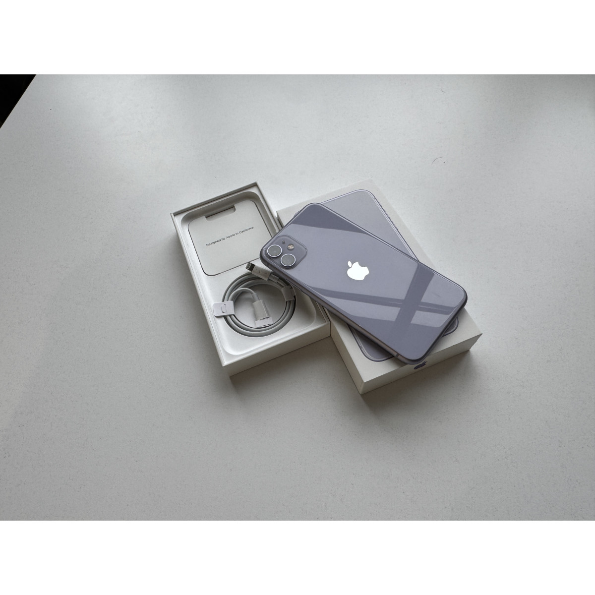 iPhone 11 128 Гб Фиолетовый в состоянии 5-/5. По девайсу есть незначительные следы пользования, которые никак не влияют на его работы, технически полностью исправен. Установили новый аккумулятор, ёмкость 100%. Полный комплект аксессуаров.