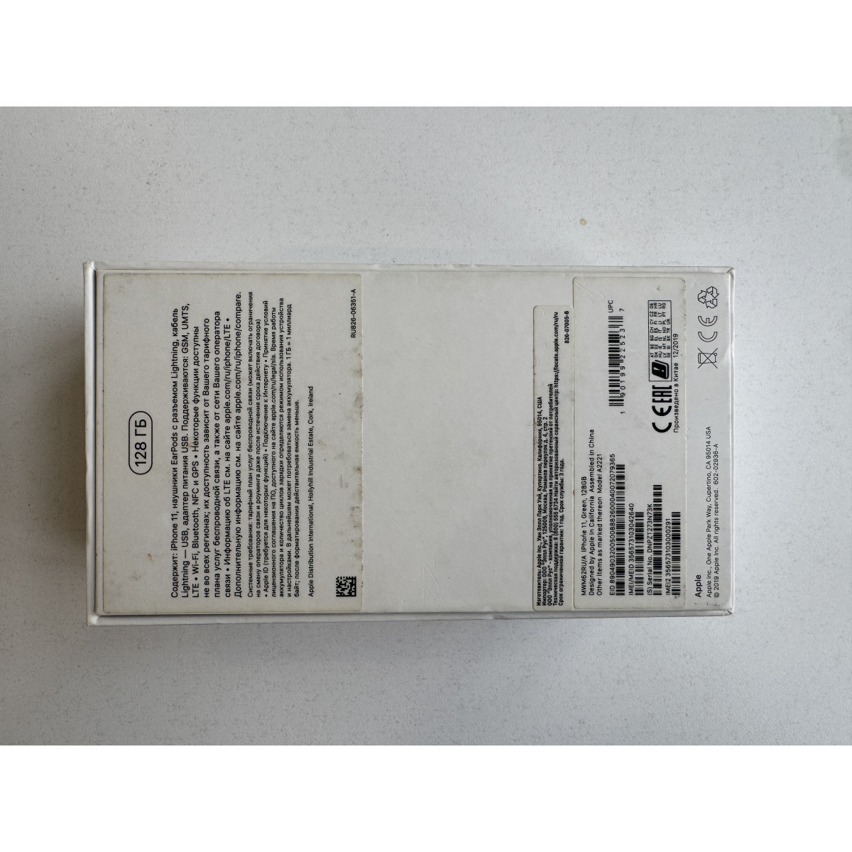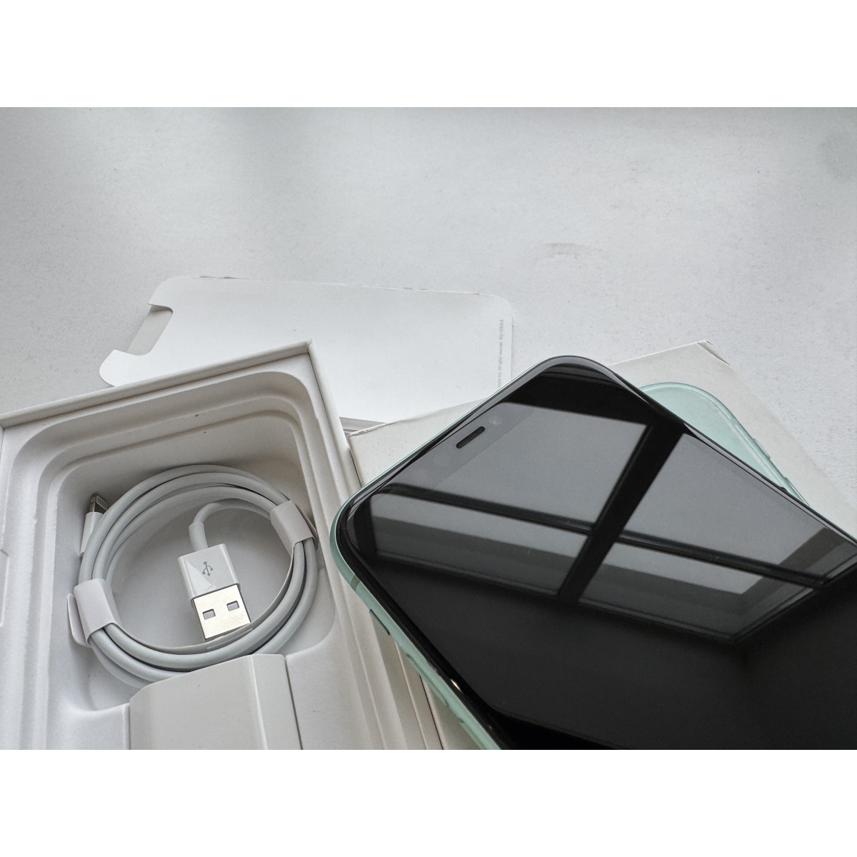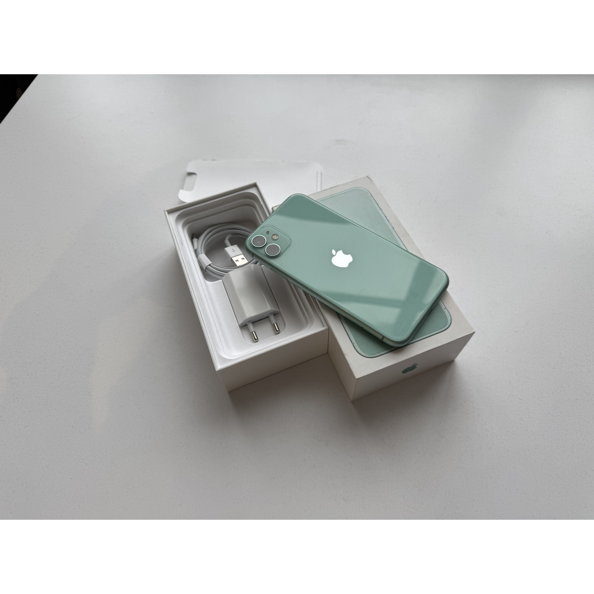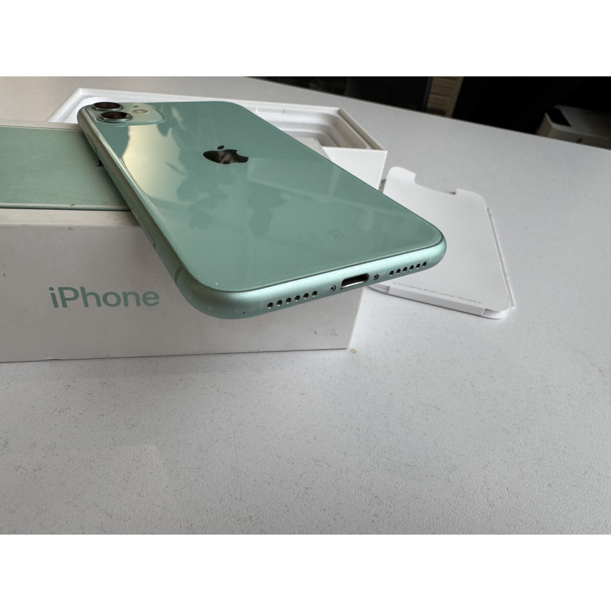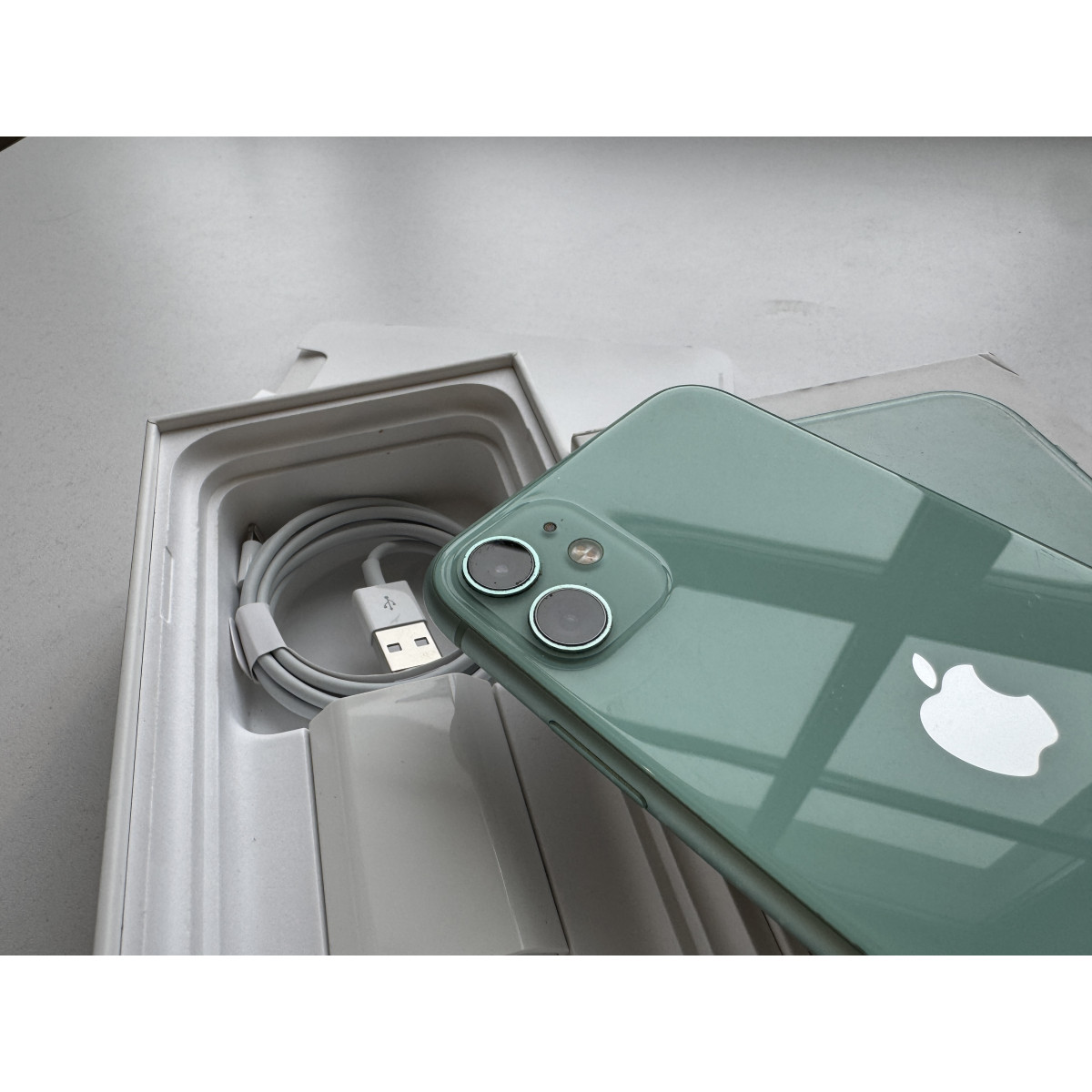 iPhone 11 128 Гб Зеленый в состоянии 5-/5. По девайсу есть незначительные следы пользования, технически полностью исправен. Установили новый аккумулятор, ёмкость 100%. В комплекте коробка и зарядное устройство.