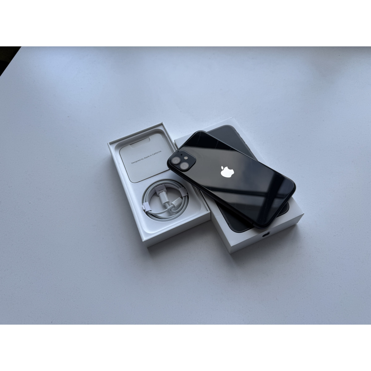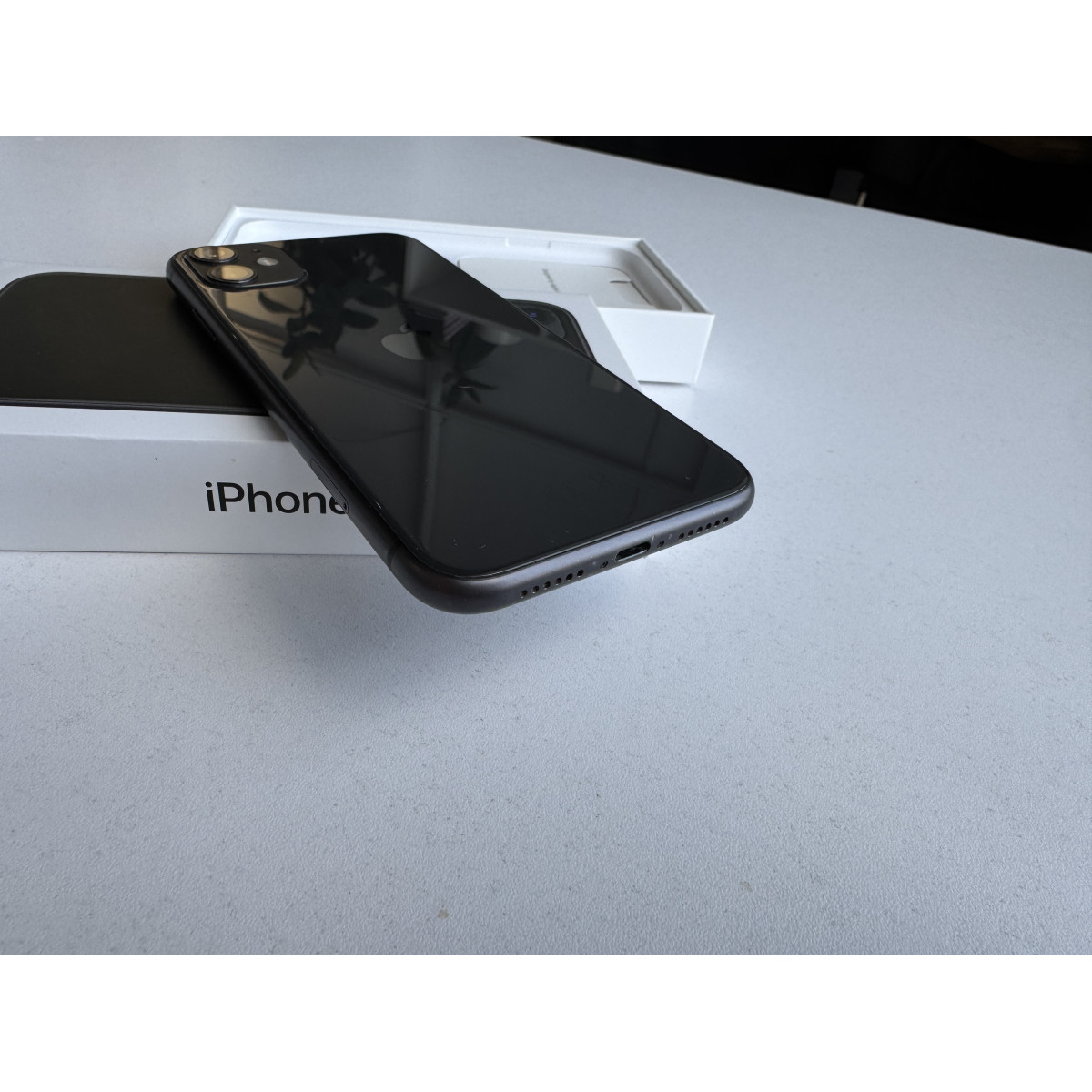 iPhone 11 64 Черный в состоянии 5--/5. По девайсу есть следы пользования, технически полностью исправен. Установили новый аккумулятор, ёмкость 100%. Полный комплект аксессуаров.