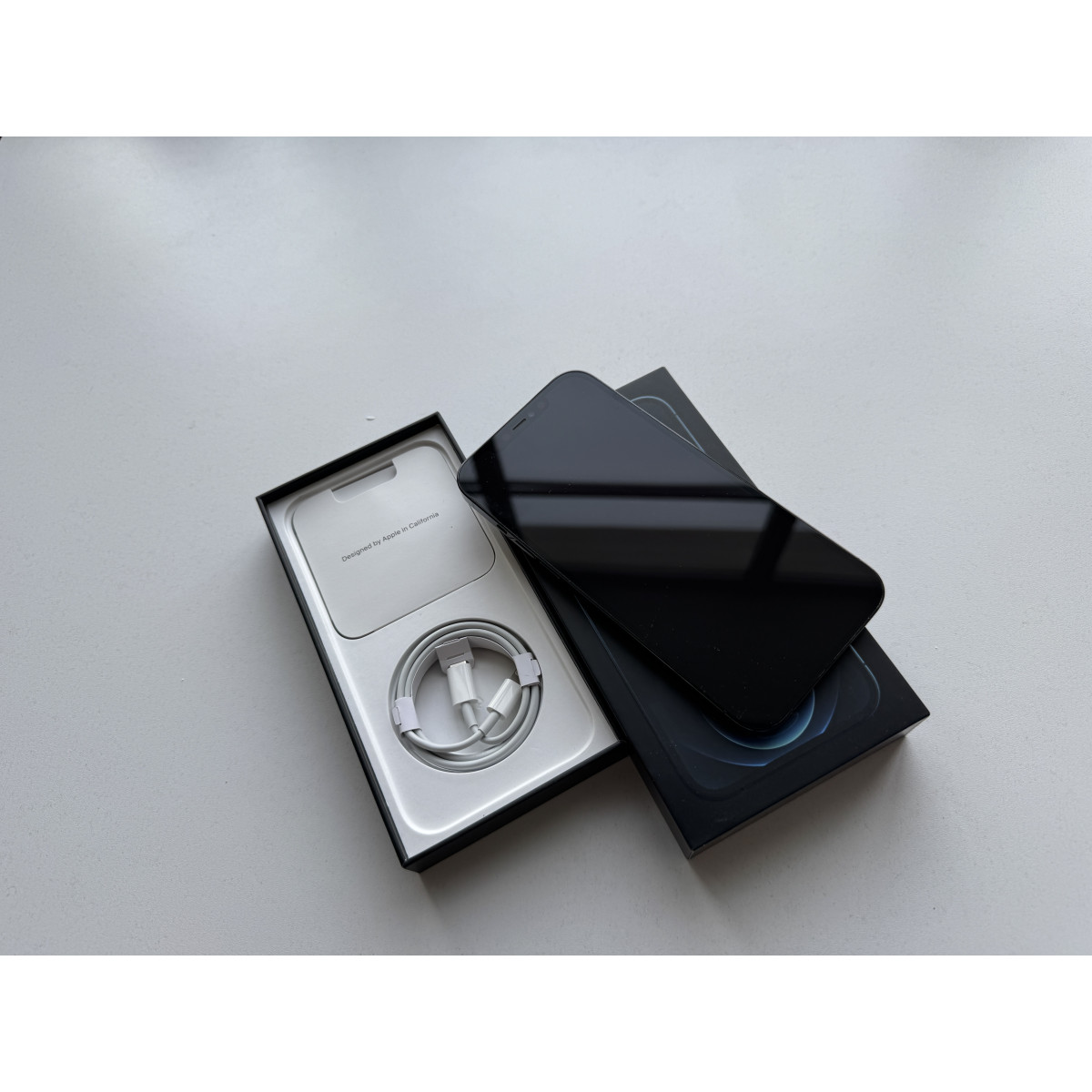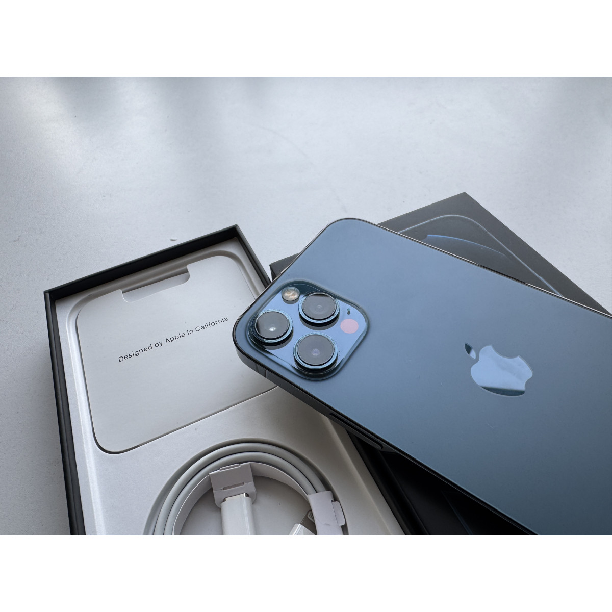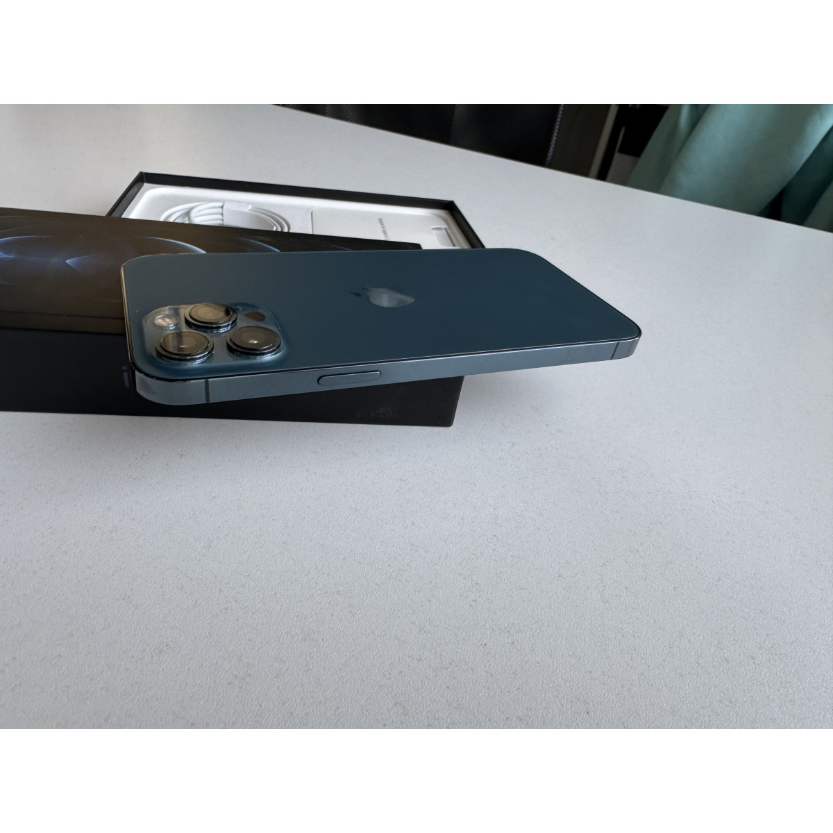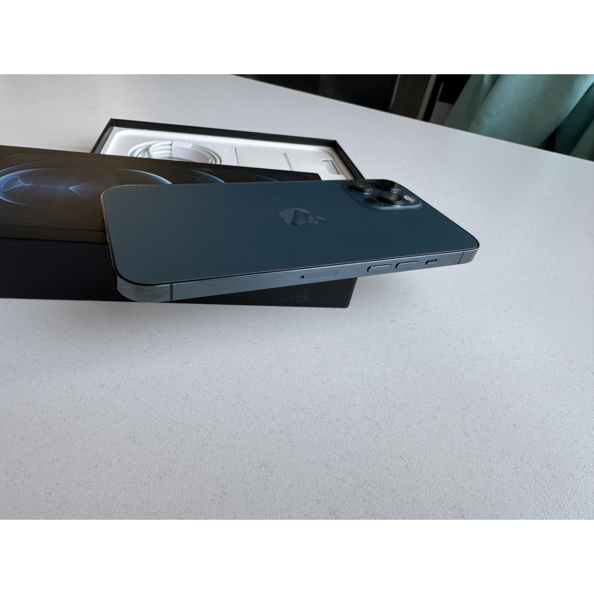 iPhone 12 Pro Max 256 Гб Тихоокеанский синий в состоянии 5-/5. Мелкие следы пользования рамке корпуса, дисплей в отличном состоянии. Установили новый аккумулятор, ёмкость 100%. Полный комплект аксессуаров.