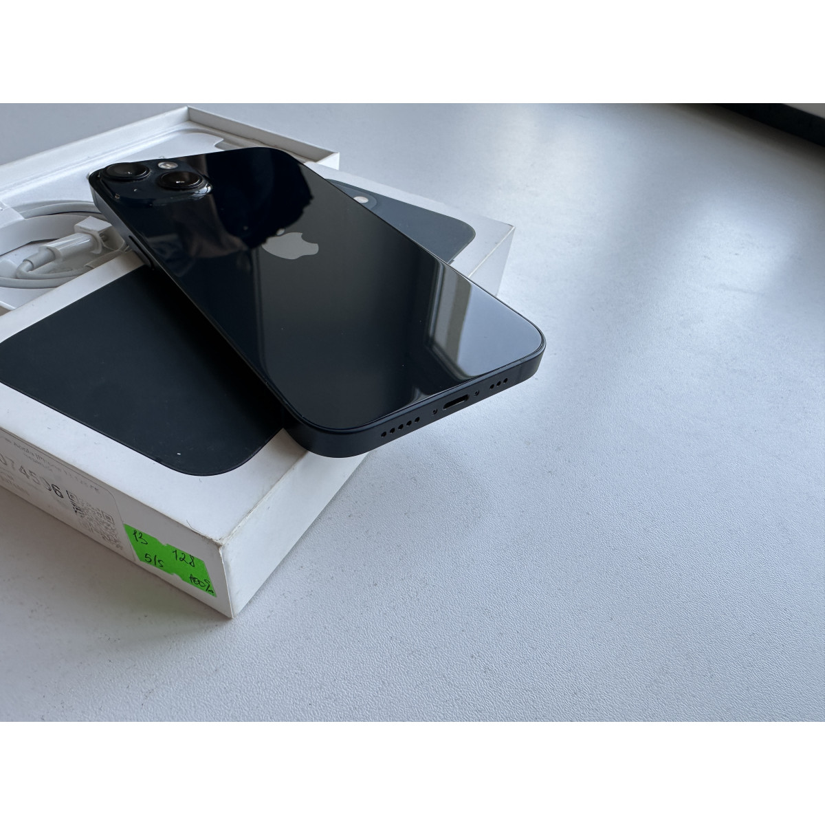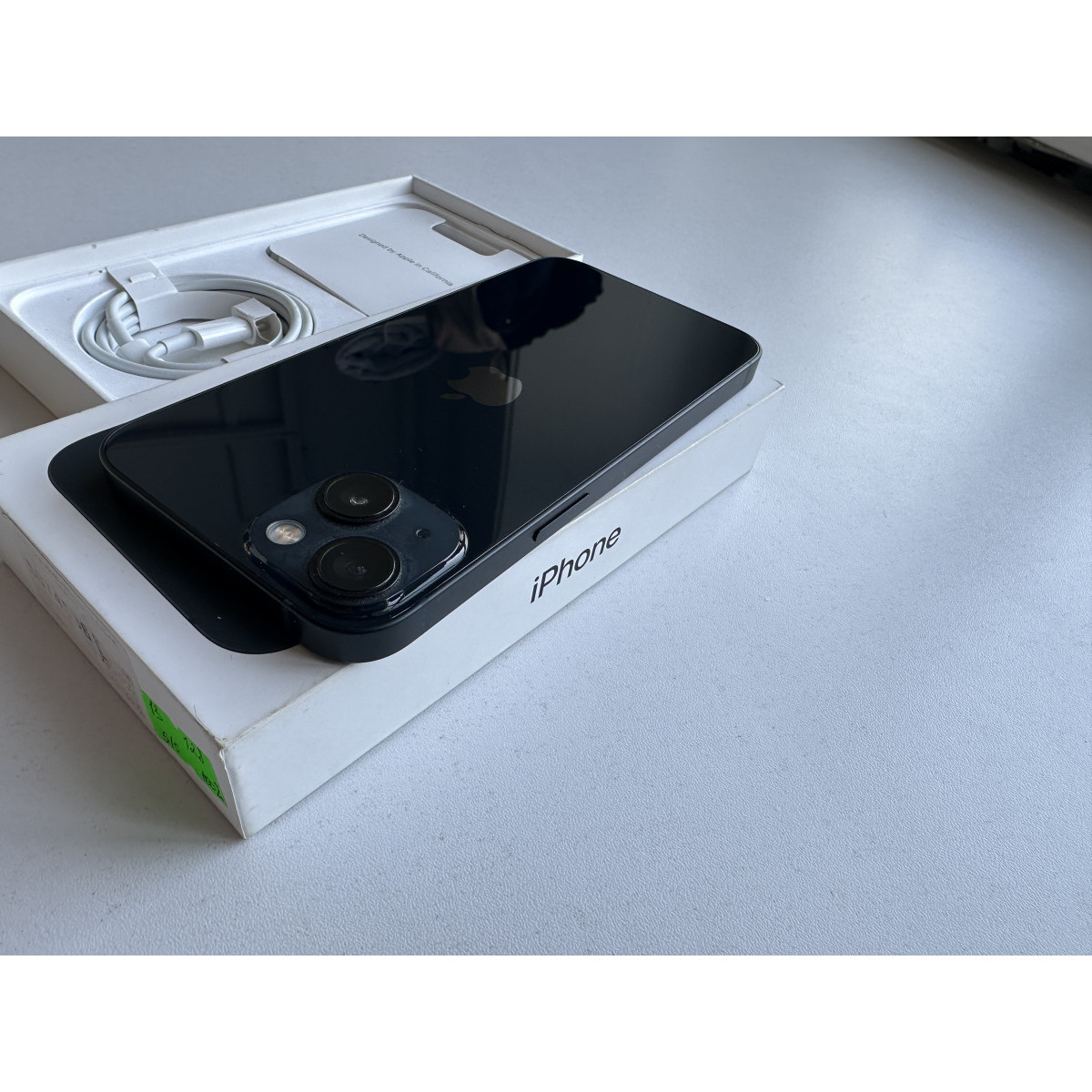 iPhone 13 128 Темная ночь в состоянии 5/5. Идеальное состояние, телефон в пользовании пол года. Максимальная ёмкость аккумулятора - 100%. Полный комплект аксессуаров.