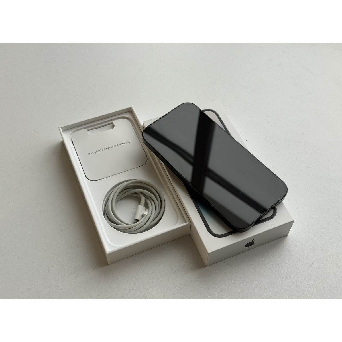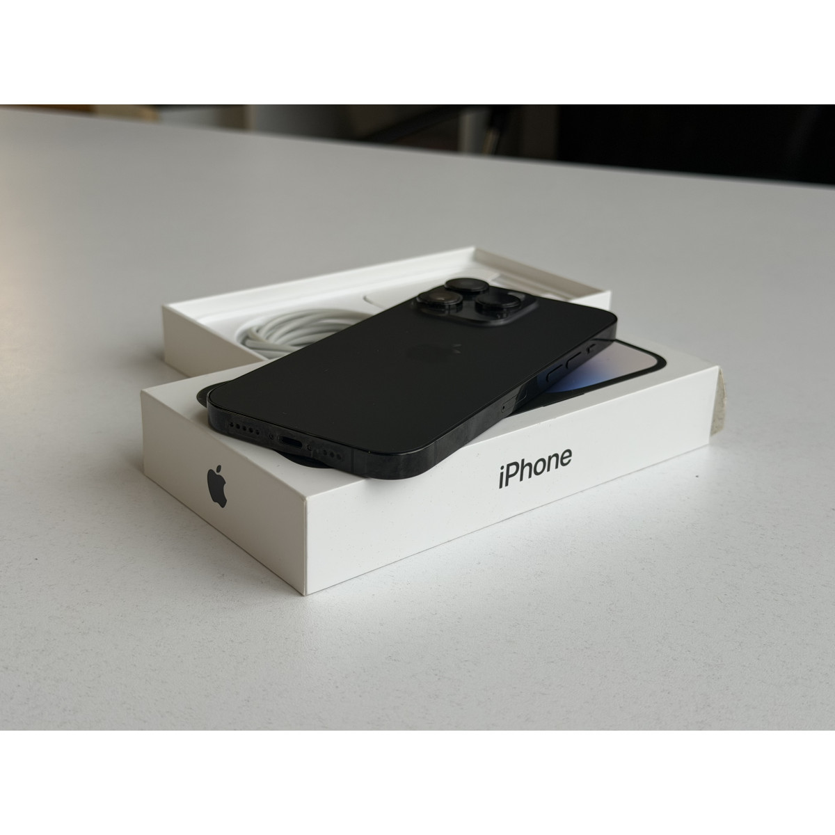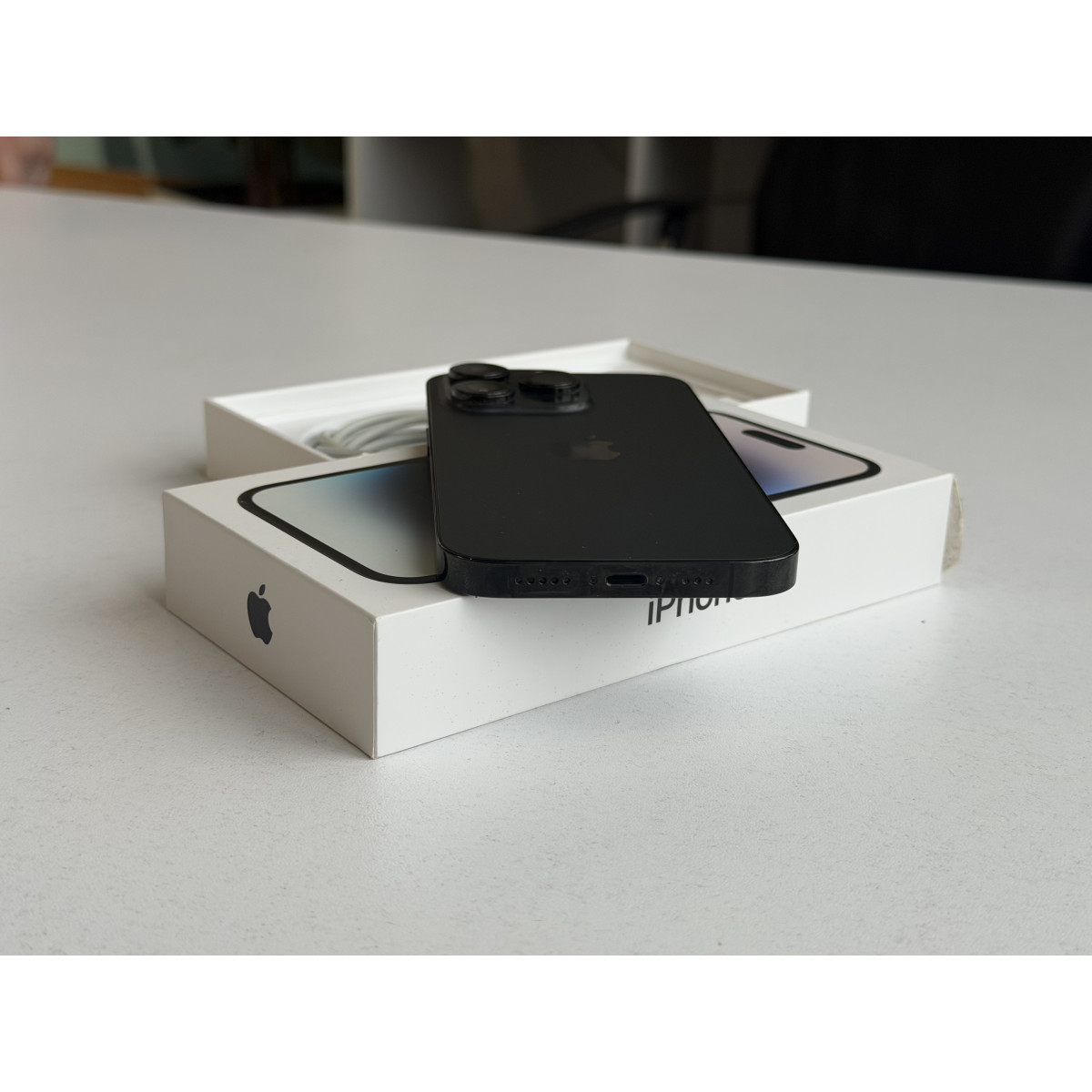 iPhone 14 Pro 256 Гб Черный космос в состоянии 5-/5. Есть небольшие следы пользования по девайсу, технически полностью исправен. Установлен новый аккумулятор. Максимальная емкость - 100%. Полный комплект аксессуаров.