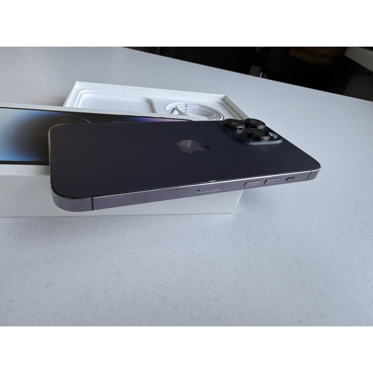 iPhone 14 Pro Max 256 Гб Темно-фиолетовый в состоянии 4/5. Есть следы пользования девайсу, который никак не влияют на работу устройства. Сделали чистку камеры и заменили аккумулятор, ёмкость 100%. Полный комплект аксессуаров.