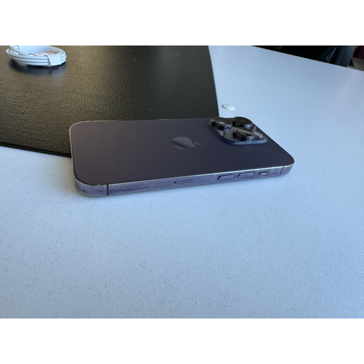 iPhone 14 Pro 256 Гб Темно-фиолетовый в состоянии 5-/5. Есть следы пользования по корпусу, дисплей в отличном состоянии Ёмкость аккумулятора 90%. В комплекте провод для быстрой зарядки.