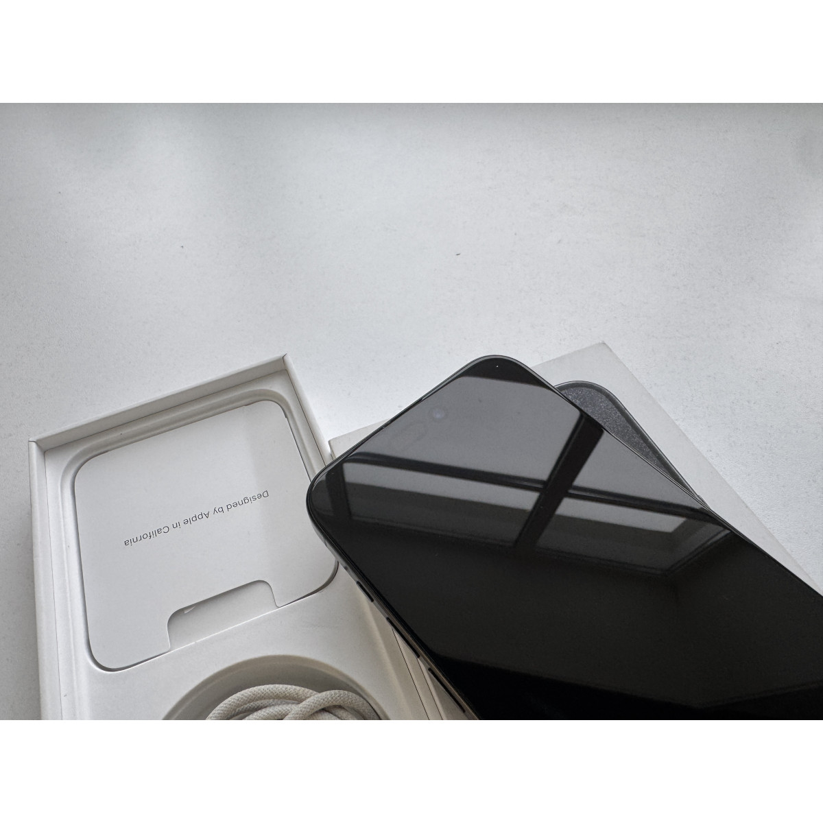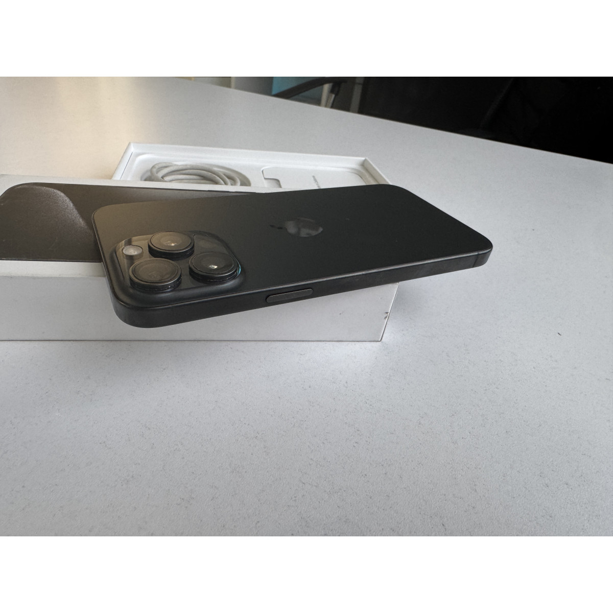 iPhone 15 Pro Max 1 Тб Черный титан в состоянии 5-/5. По дисплею есть следы пользования, корпус в отличном состоянии. Установили новый аккумулятор, ёмкость 100%. Полный комплект аксессуаров.