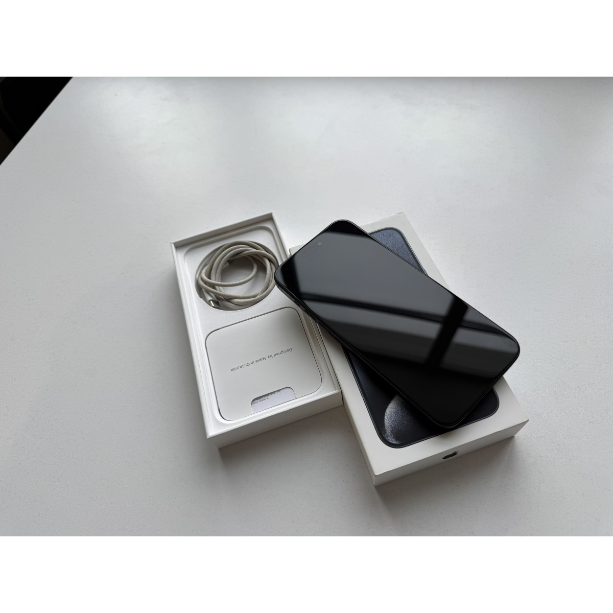 iPhone 15 Pro Max 1 Тб Синий титан в состоянии 5-/5. Мельчайшие следы пользования по телефону. Была заменена задняя крышка на оригинальную. Установили новый аккумулятор, ёмкость 100%. Полный комплект.