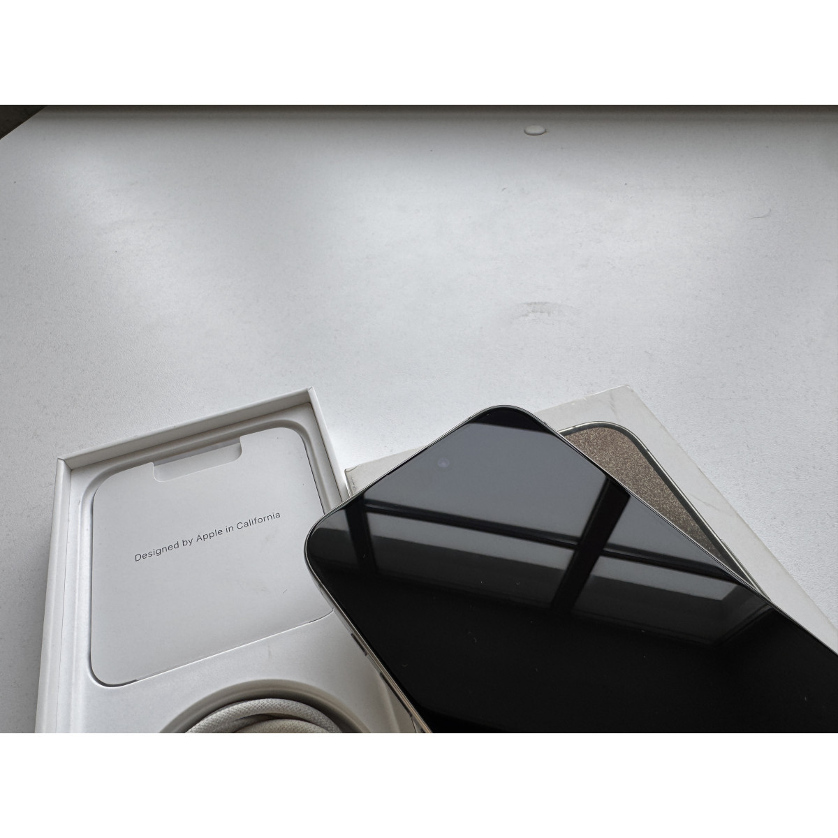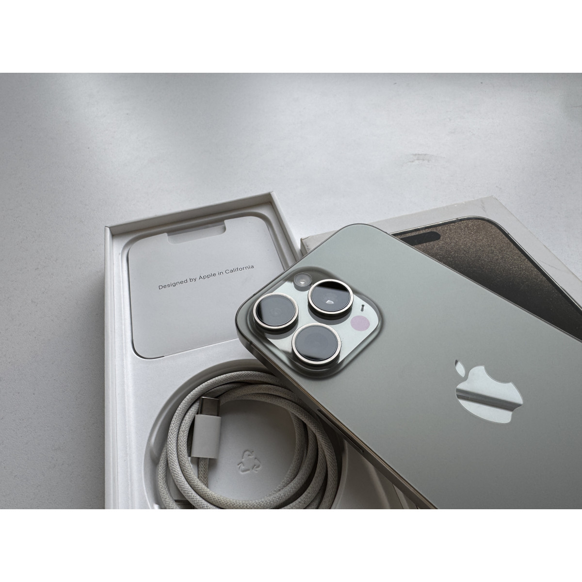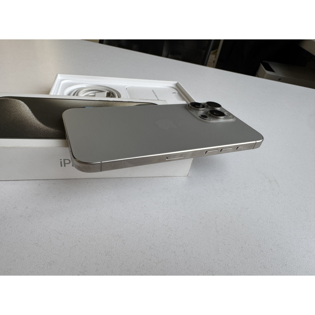 iPhone 15 Pro Max 512 Натуральный титан в состоянии 5-/5. По дисплею есть незначительные следы пользования, корпус в отличном состоянии. Максимальная емкость аккумулятора - 86%. Полный комплект.