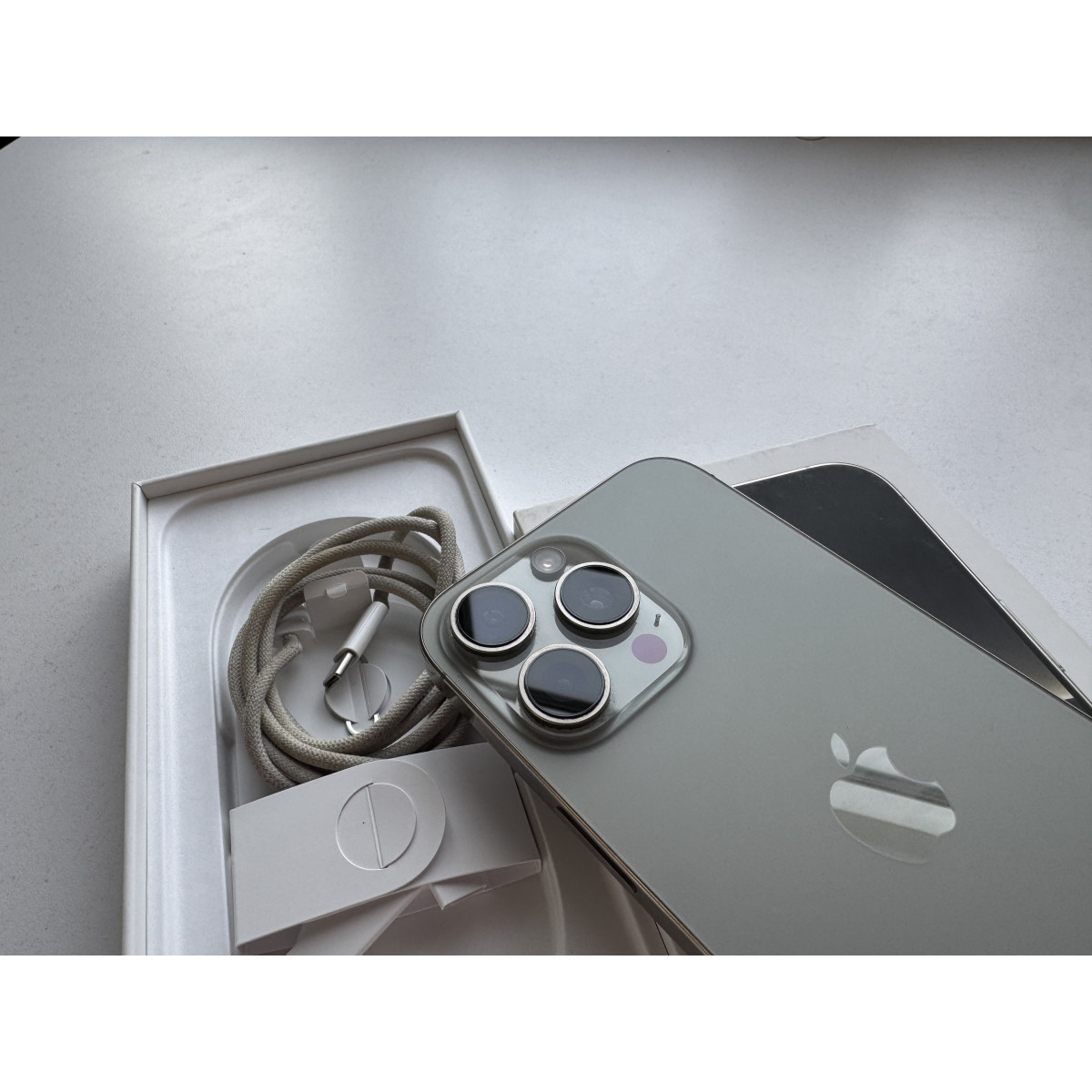 iPhone 16 Pro Max 256 Гб Натуральный титан в состоянии 5-/5. По девайсу есть незначительные следы пользования, технически полностью исправен. Ёмкость аккумулятора - 92%, 456 циклов перезарядки аккумулятора. Полный комплект аксессуаров.