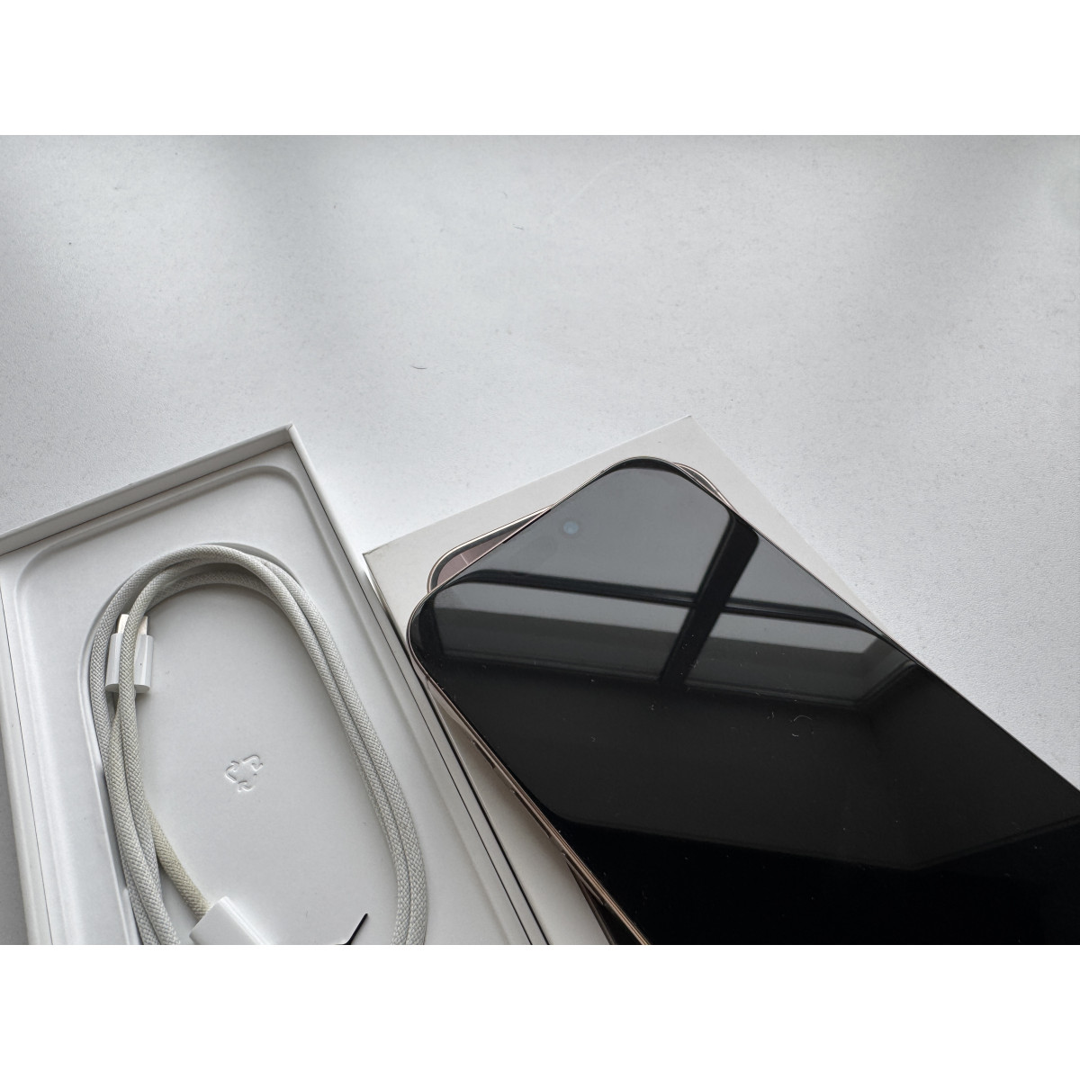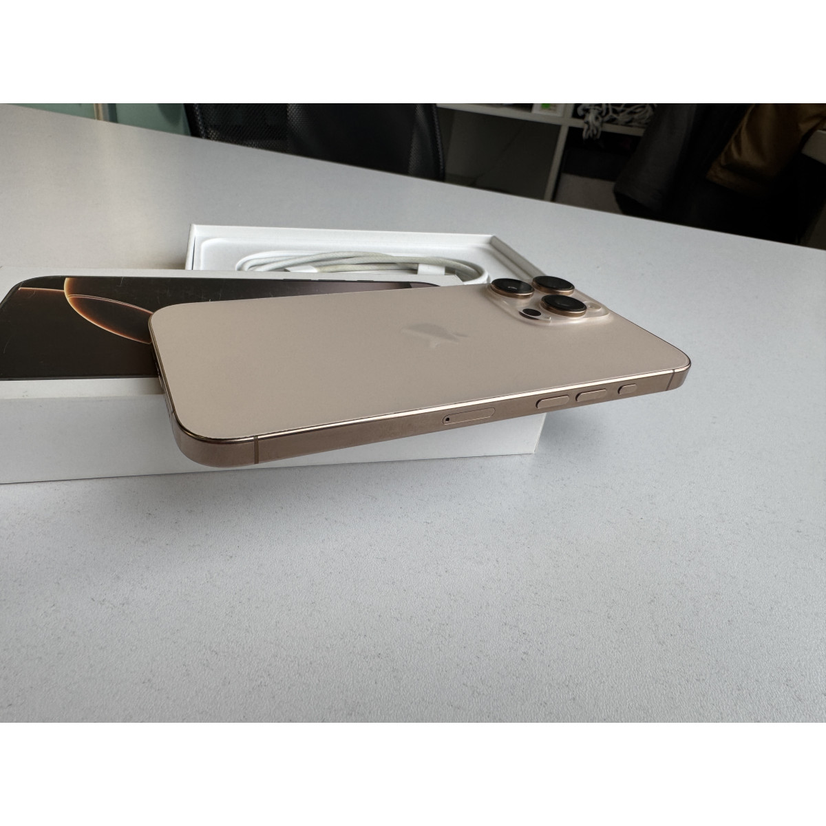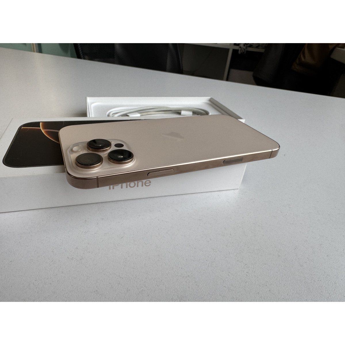 iPhone 16 Pro Max 256 Гб Пустынный титан в состоянии 5-/5. По дисплею есть незначительные следы пользования, технически полностью исправен. Максимальная емкость аккумулятора - 92%. Полный комплект аксессуаров.