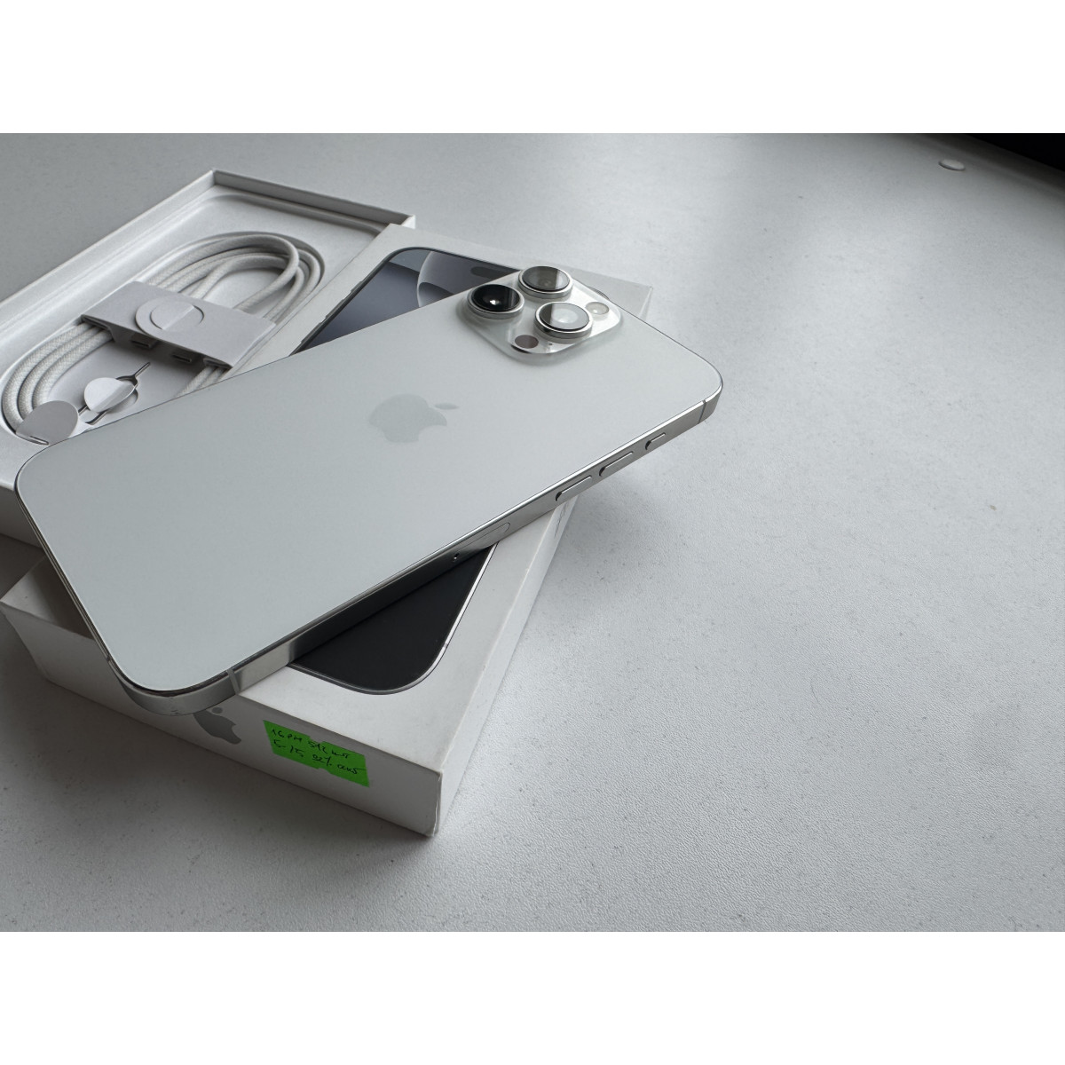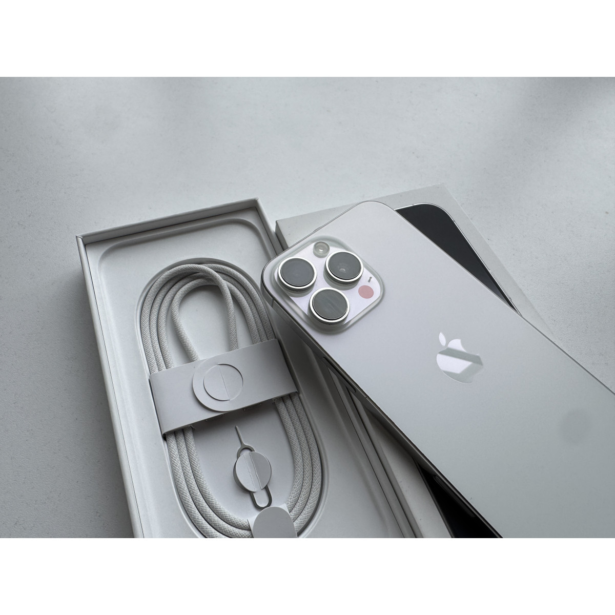 iPhone 16 Pro Max 512 Гб Белый титан в состоянии 5-/5. Есть мельчайшие следы пользования по телефону, произвели чистку камеры. Максимальная емкость аккумулятора - 92%. Полный комплект аксессуаров.