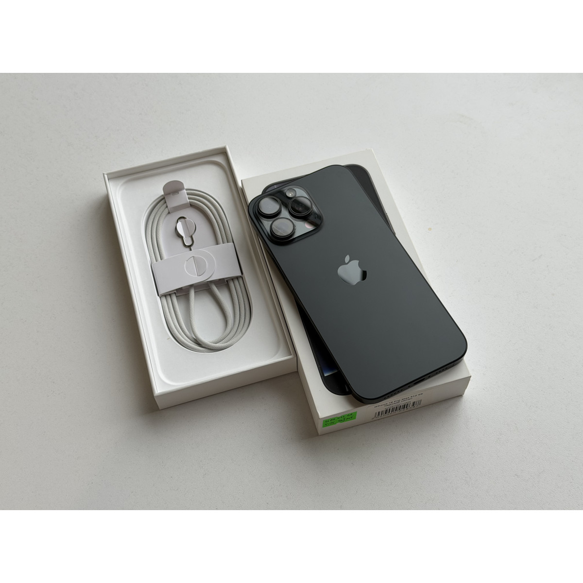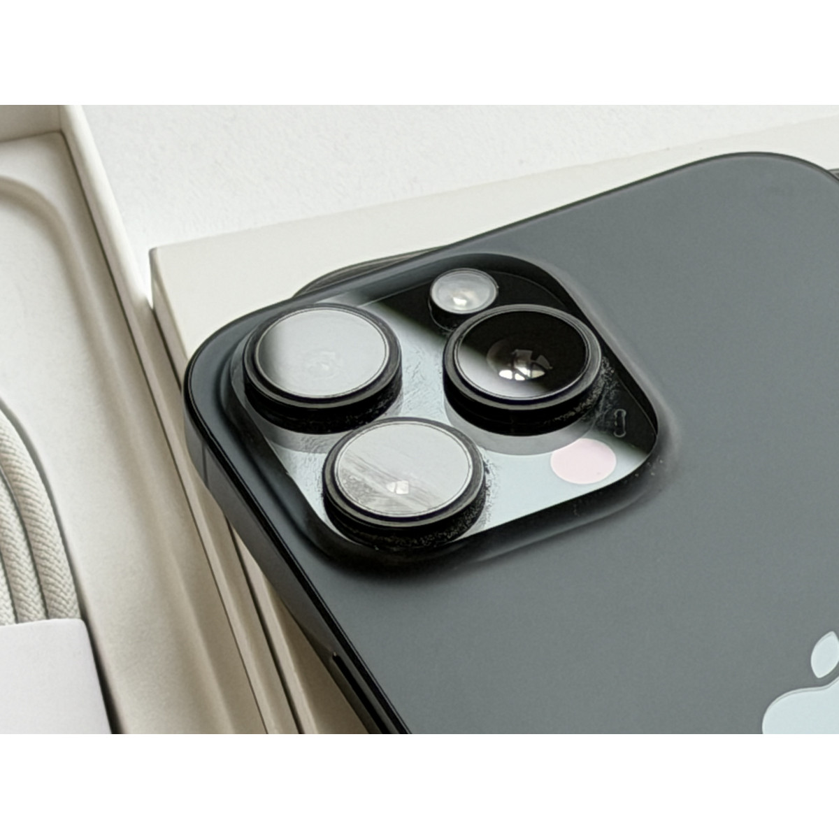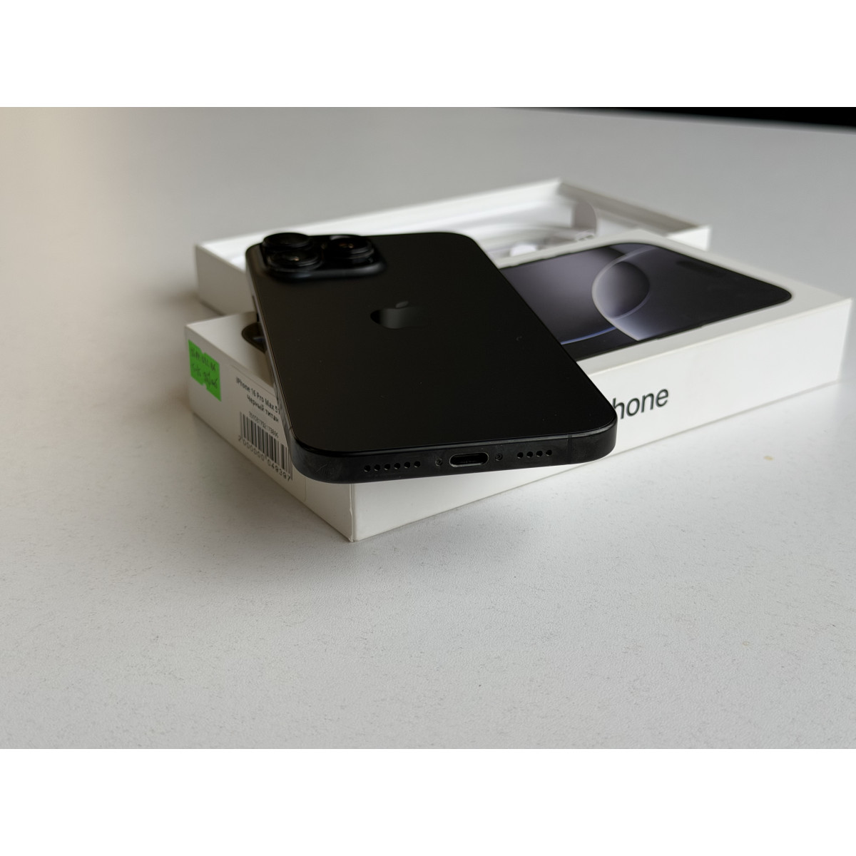 iPhone 16 Pro Max 512 Гб Черный титан в состоянии 5/-5. Состояние близко к идеальному, минус поставили из-за еле заметных следов на дисплее. Максимальная емкость аккумулятора - 100%. Полный комплект аксессуаров.