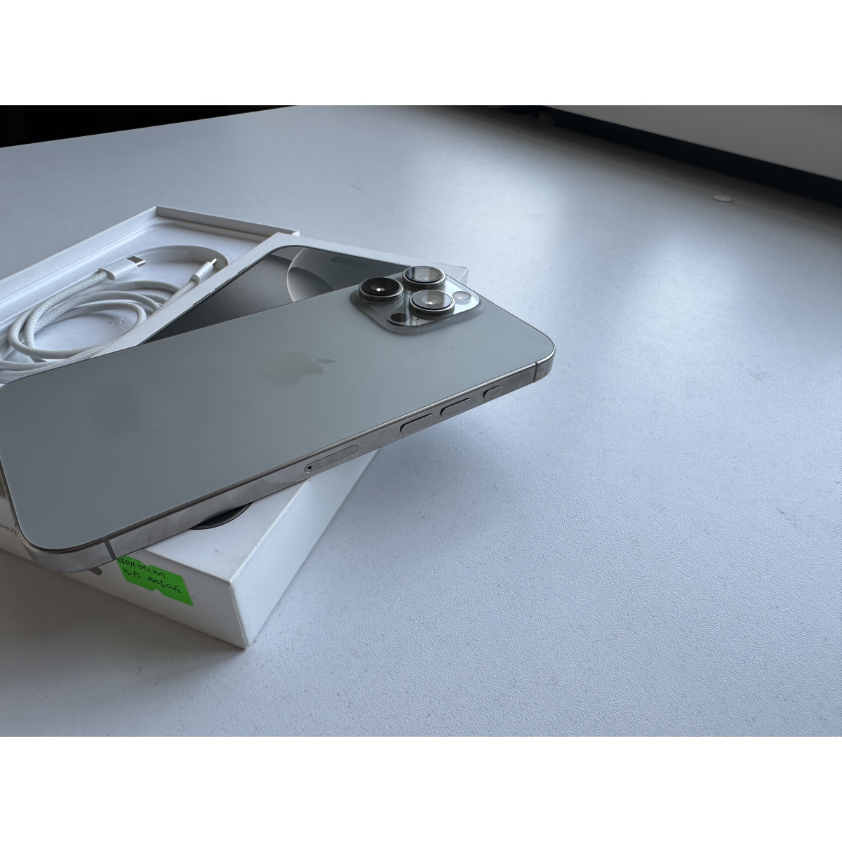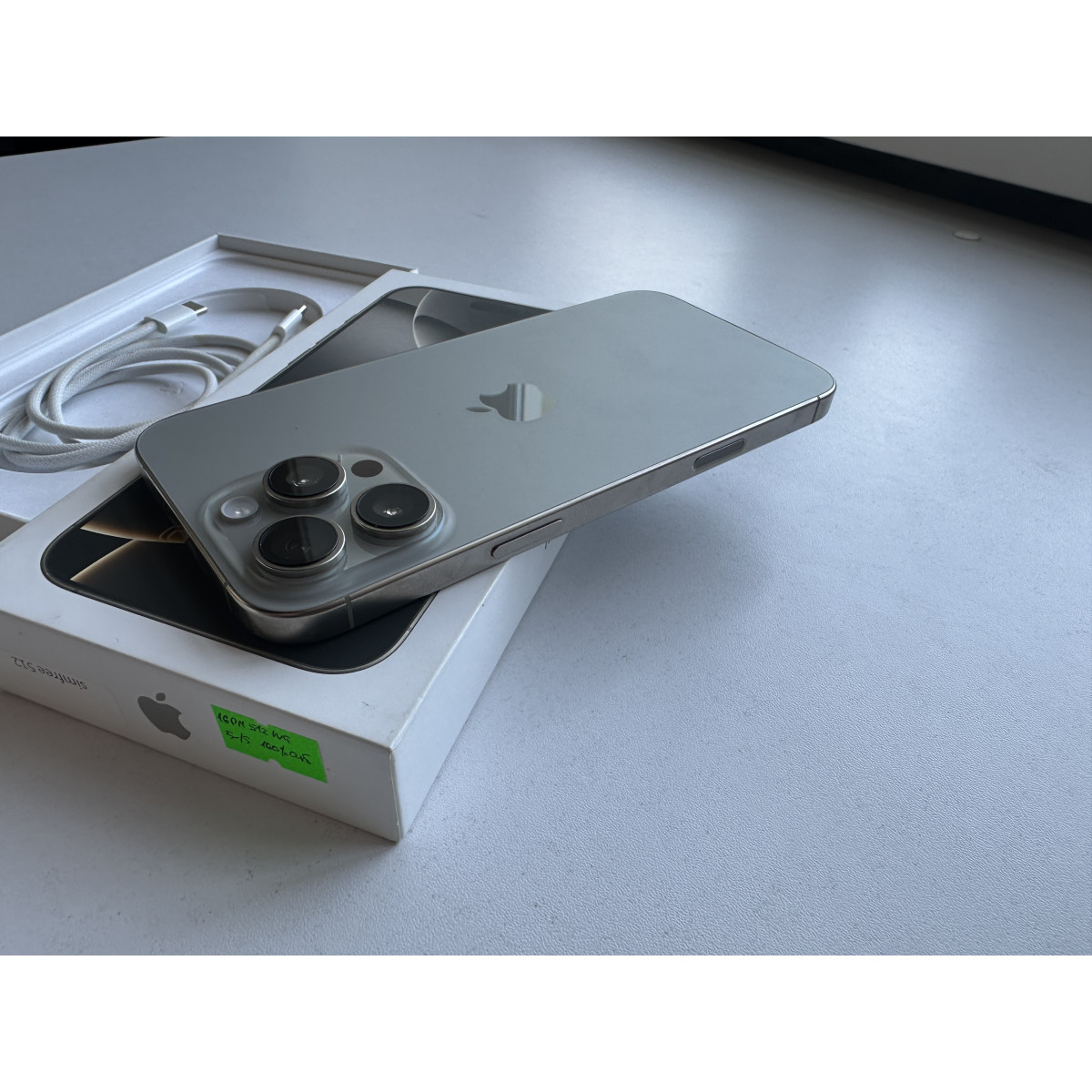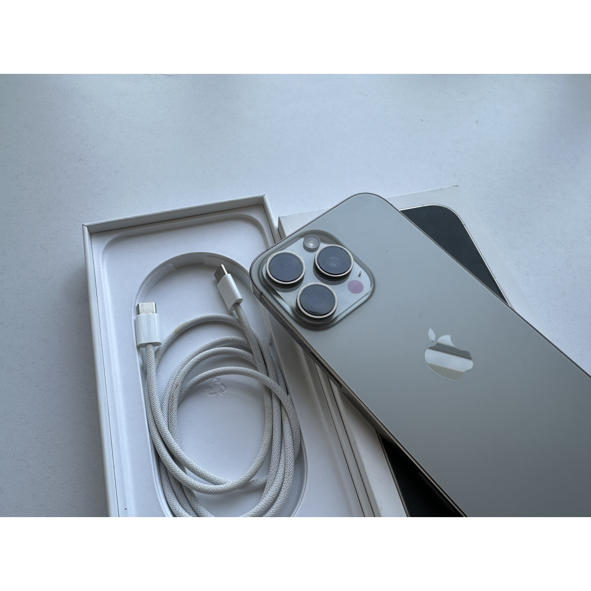 iPhone 16 Pro Max 512 Гб Натуральный титан в состоянии 5-/5. Состояние близко к отличному, пара еле заметных следов на корпусе около порта зарядки. Емкость аккумулятора - 100%. Полный комплект аксессуаров.