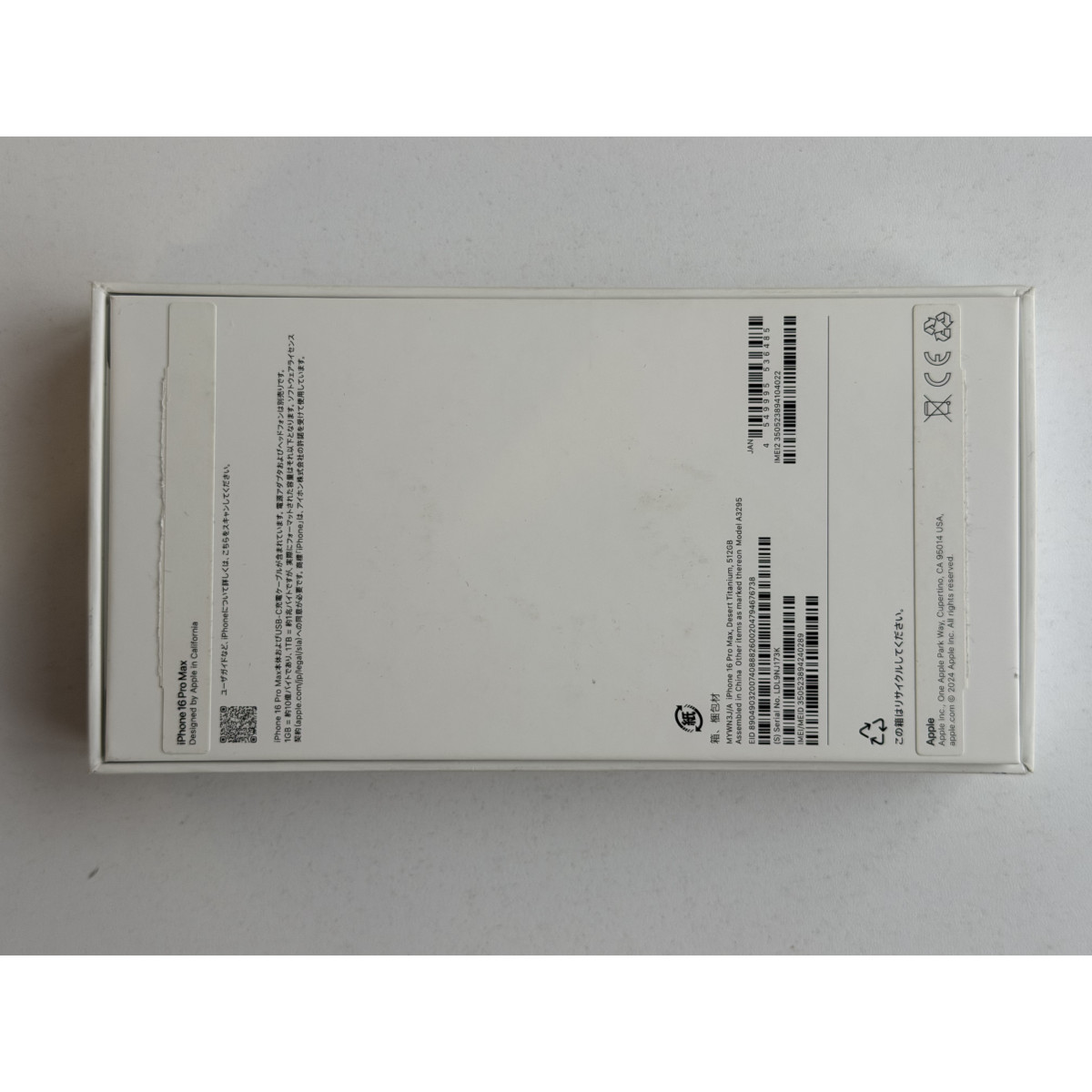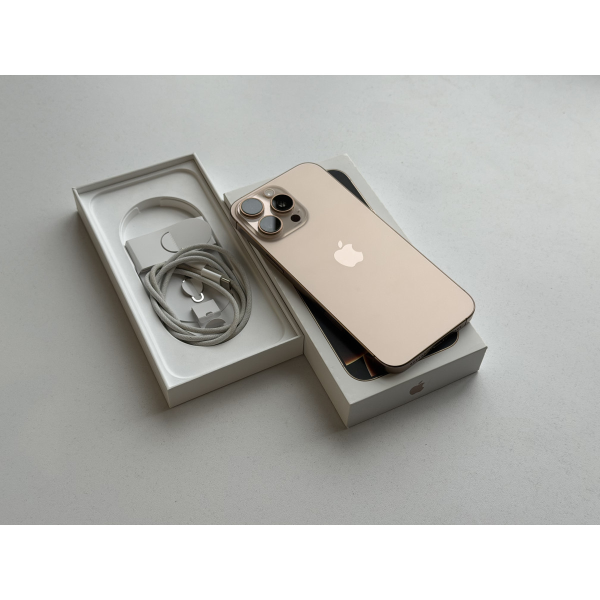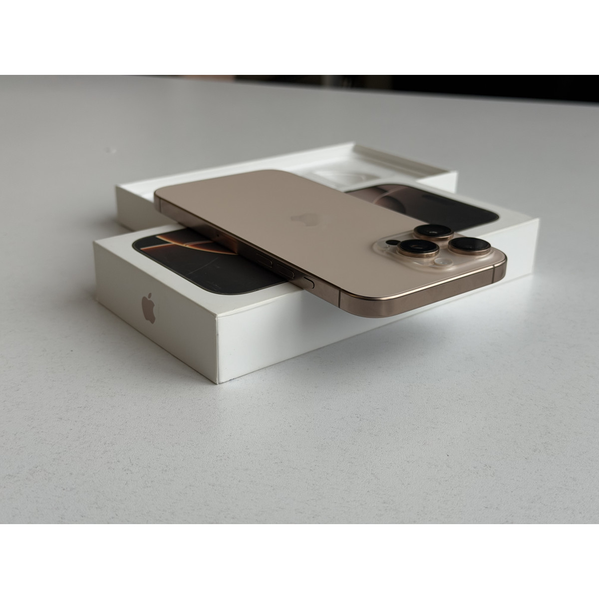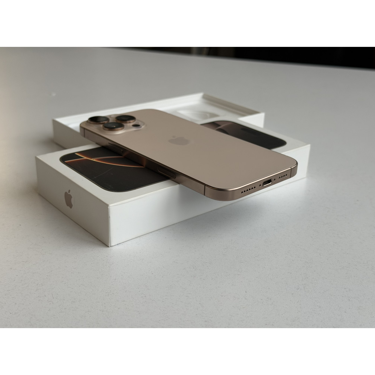 iPhone 16 Pro Max 512 Гб Пустынный титанв состоянии 5/5. Дисплей, корпус и заднее стекло в отличном состоянии. Максимальная емкость аккумулятора - 100%. Полный комплект аксессуаров.
