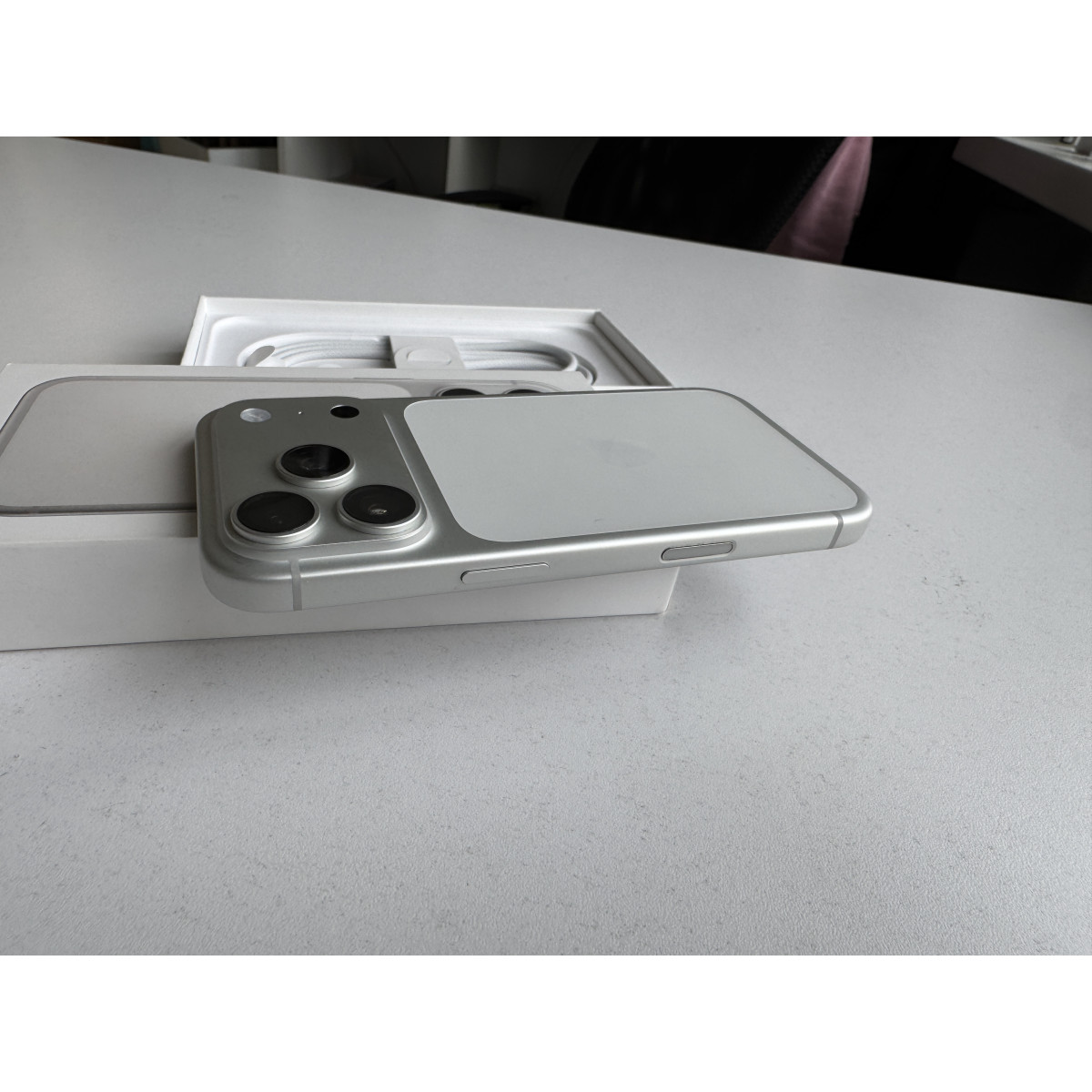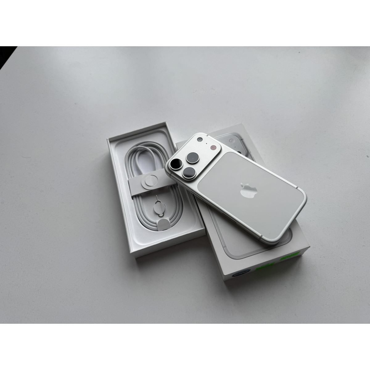 iPhone 17 Pro 256 Гб Серебристый в состоянии 5/5. Девайс был в пользовании всего 1,5 месяца, в отличном состоянии, без каких-либо следов. Ёмкость аккумулятора 100%. Полный комплект аксессуаров. Гарантия до 30.01.2027.