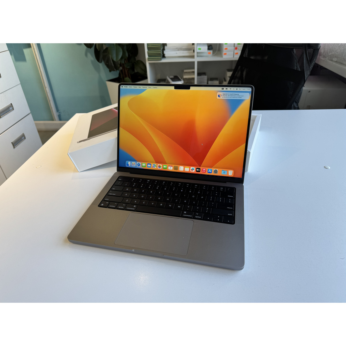 MacBook Pro 14 2023 16Гб/512Гб Серый космос Apple M2 Pro 16 Гб ОЗУ в состоянии 5-/5. По девайсу есть следы пользования, которые никак не влияют на работу. 394 цикла перезарядки аккумулятора (86% ёмкость). Полный комплект аксессуаров.